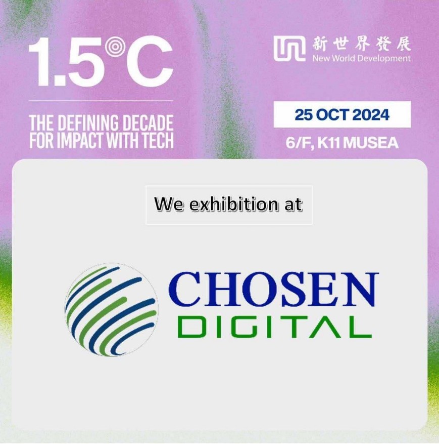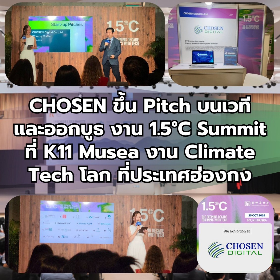 CHOSEN ขึ้น Pitch บนเวที และออกบูธ งาน 1.5°C Summit ที่ K11 Musea งาน Climate Tech โลก ที่ประเทศฮ่องกง เกี่ยวกับทศวรรษแห่งการกำหนดผลกระทบจากเทคโนโลยี รวบรวมผู้เชี่ยวชาญชั้นนำและผู้ประกอบการจากทั่วโลกมาพูดคุยเกี่ยวกับเทคโนโลยีเพื่อรับมือกับการเปลี่ยนแปลงสภาพภูมิอากาศโลก