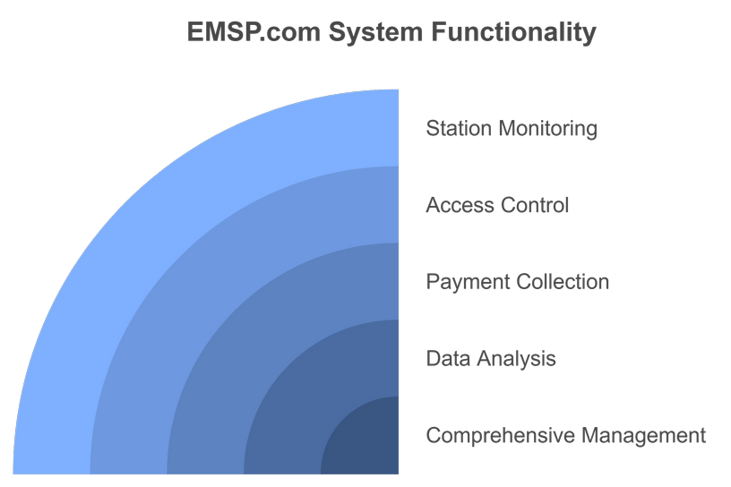 The EMSP.com system provides a centralized platform for managing EV charging stations. Operators can monitor station status, control access, collect payments, and analyze usage data, all from a single interface. This comprehensive management capability optimizes operations and improves overall efficiency.