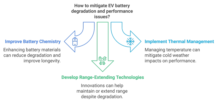 EV batteries are subject to degradation over time, which can reduce their capacity and range. Additionally, cold weather can negatively impact battery performance, further limiting the range of electric vehicles in certain climates.