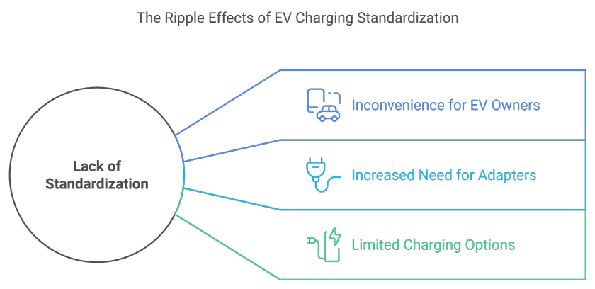 The absence of standardization in charging connectors and protocols complicates the charging process. Different manufacturers may use varying standards, making it difficult for EV owners to charge their vehicles at various locations without the need for adapters.