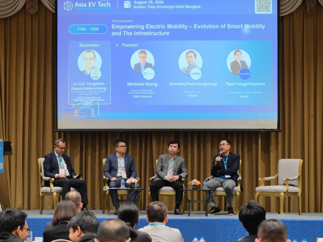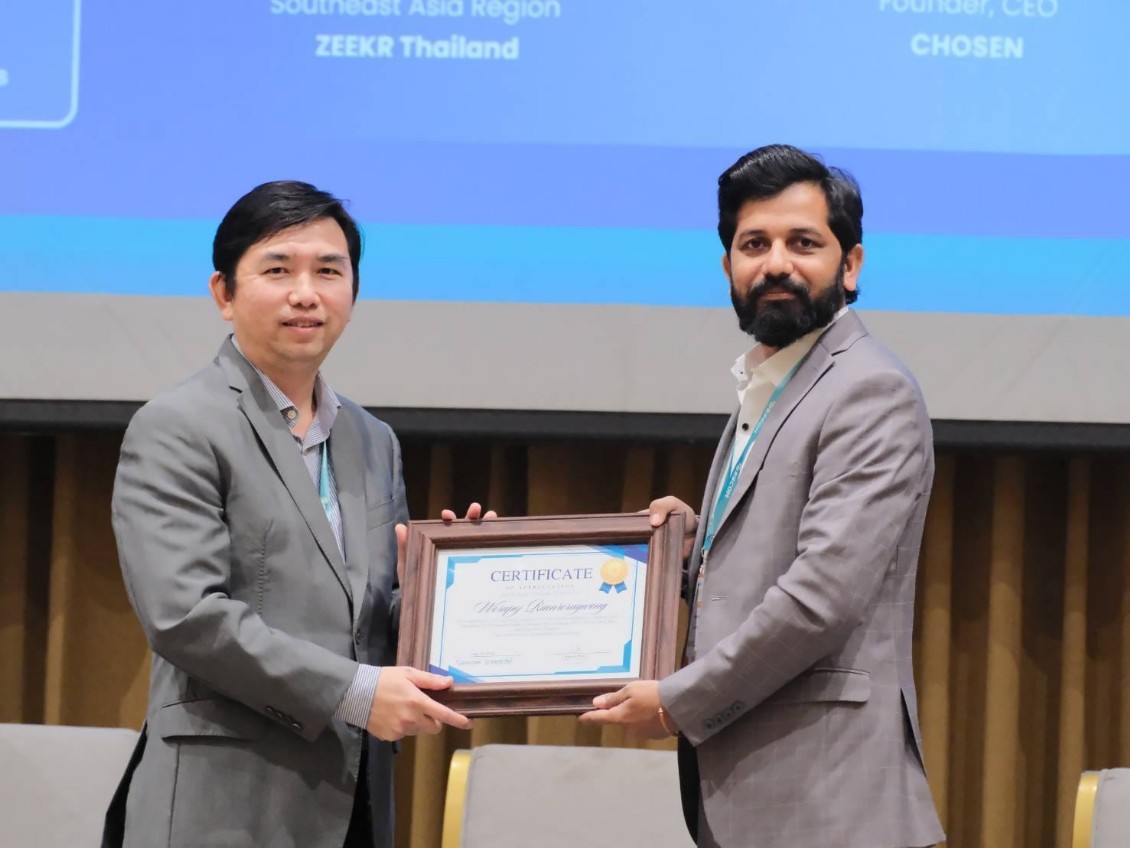 คุณวรพจน์ รื่นเริงวงศ์ ผู้ก่อตั้งและ CEO ของ CHOSEN Digital Co.,Ltd. ได้รับเชิญเป็นวิทยากรเพื่อแบ่งปันแนวคิดและตอบคำถาม หัวข้อ Empowering Electric Mobility – Evolution of Smart Mobility and the Infrastructure ในงาน Asia EV Tech Thailand Summit