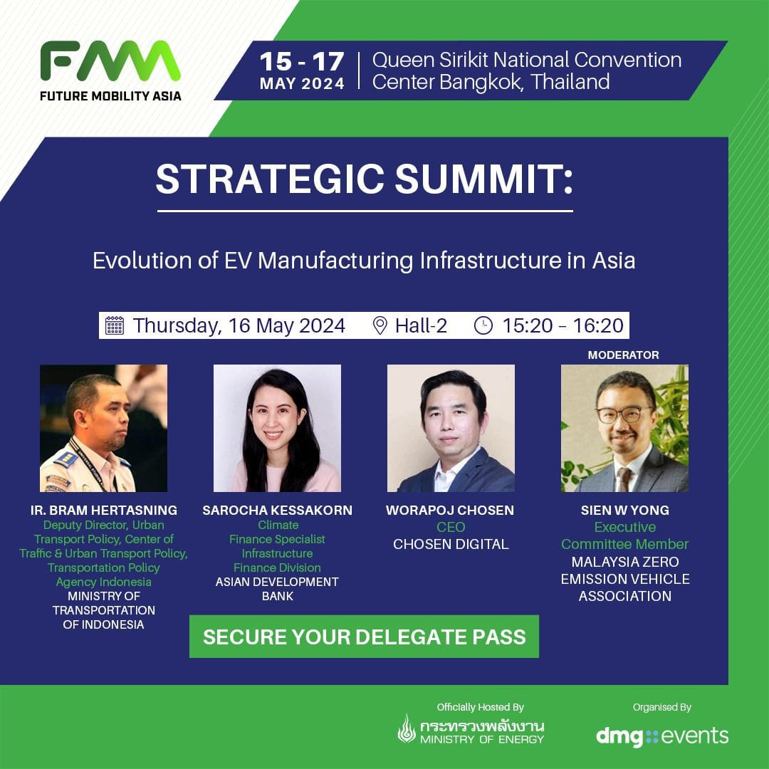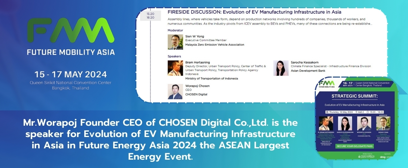 Mr.Worapoj Founder CEO of CHOSEN Digital is invited to be a speaker of Evolution of EV Manufacturing Infrastructure in ASIA in Future Mobility ASIA 2024 at QSNCC