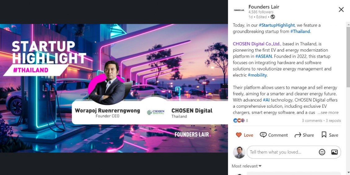 Founders Lair, Platform Startup Ecosystem โลก คัดเลือก CHOSEN Digital ให้เป็น Startup Highlight จาก Startup ทั่วโลก