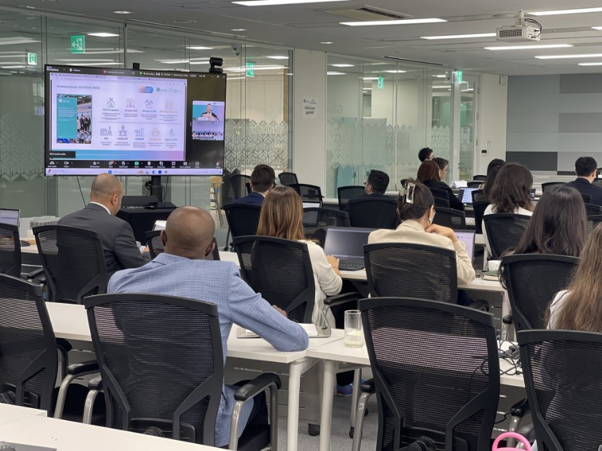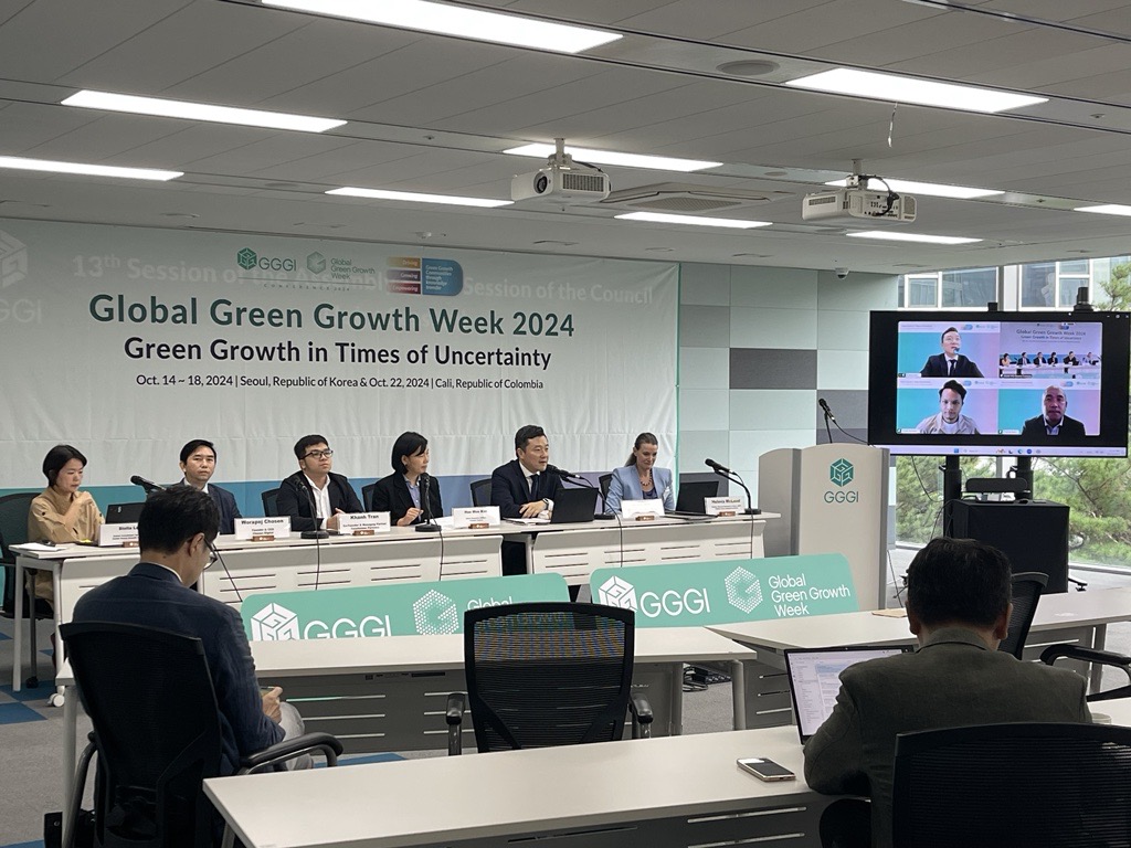 คุณ วรพจน์ รื่นเริงวงศ์ ผู้ก่อตั้งและประธานเจ้าหน้าที่บริหาร บริษัท โชเซ่น ดิจิตอล จำกัด ร่วมพูดแชร์ไอเดีย และตอบคำถามของผู้ดำเนินรายการและผู้ร่วมเข้าฟัง ในงานพลังงานสะอาดโลก Global Green Growth Week 2024 ที่กรุงโซล ประเทศเกาหลี