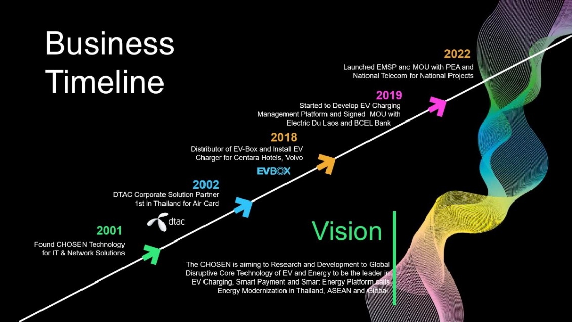 CHOSEN started business since 2001 as an IT company that set up IT systems & Solutions and started to develop EV and New Energy System since 2018 by Studying and Researching EV and Grid Modernization Directly with Chiang Mai University 1st time in Thailand and ASIAN. And collaborating with Government.