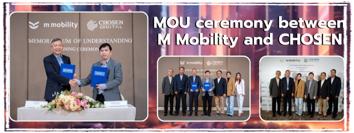 บริษัท โชเซ่น ดิจิตอล จำกัด เซ็นต์ลงนามบันทึกข้อตกลงความร่วมมือกับ M Mobility โดย Mr.Jack Cheng Chairman ของ M Mobility เพื่อพัฒนาเทคโนโลยี EV และพลังงานรูปแบบใหม่ ไปสู่ตลาดโลก